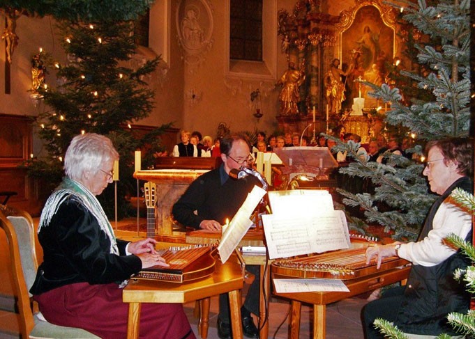 Das Gesangsquartett des MGV Kippenheim, das Hackbrett-Ensemble der Trachtengruppe Glottertal sowie Miriam und Martina Rombach am Akkordeon boten mit uns eine Vielfalt an weihnachtlichen Klängen.